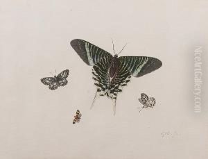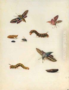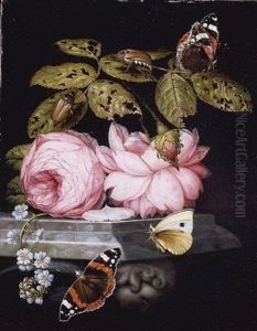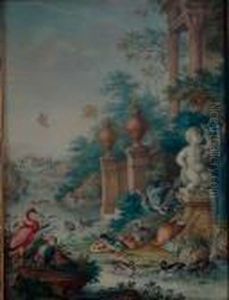 An Urn Garlanded With Flowers, And Peaches, Grapes, Hazelnuts And Various Insects And Snails On A Stone Ledge