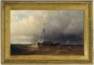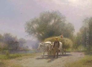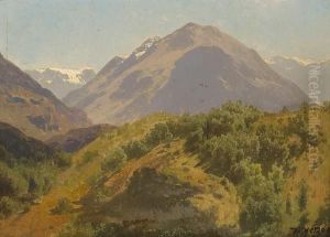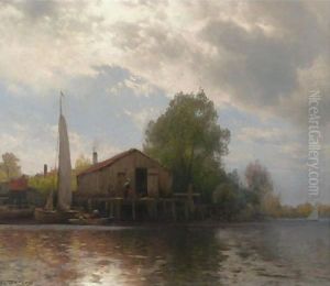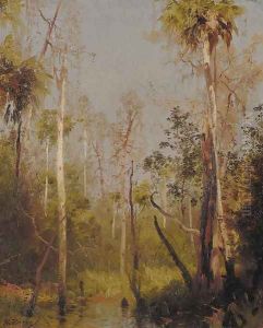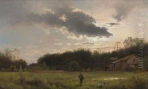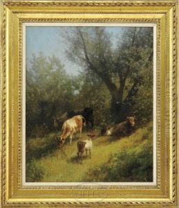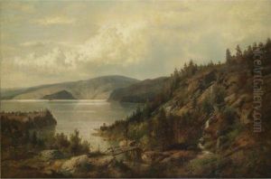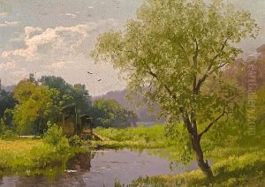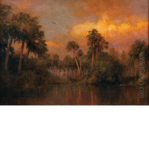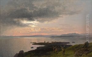 Two Matched Landscapes: Each Depicting A Stag Near A Lake