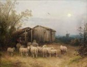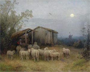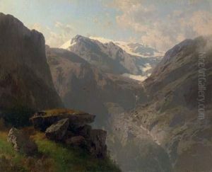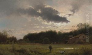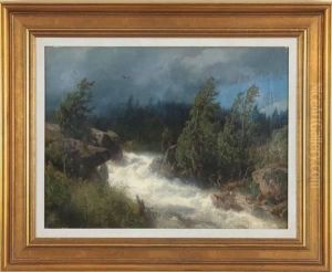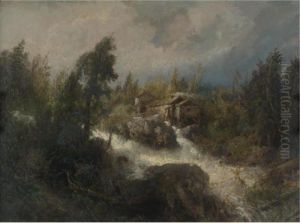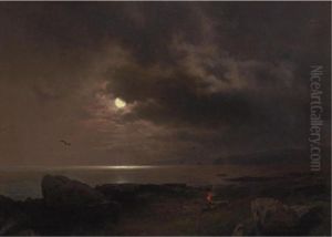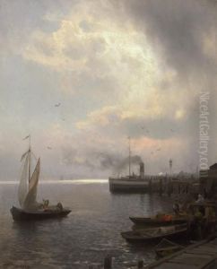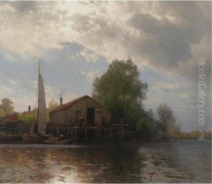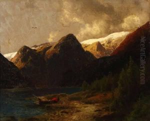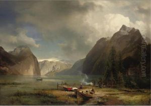 Herzog, Hermann. Fjord Landscape With Fishermen Preparing Their Boats