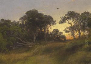 Mountain Landscapepainted On The Lid Of A Small Wooden Box