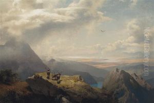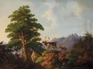 Sommerliche Gebirgslandschaft Mit Figurenstaffage.