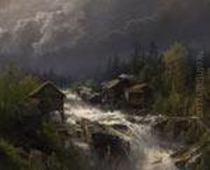 Mountain Landscape With Watermill