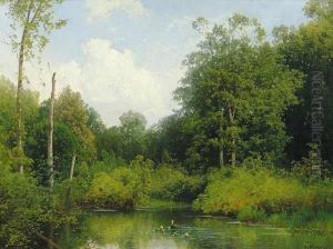 Forest Landscape With Pond And Ducks