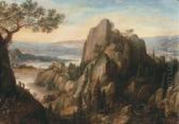 An Extensive River Landscape With A Monastery On A Cliff