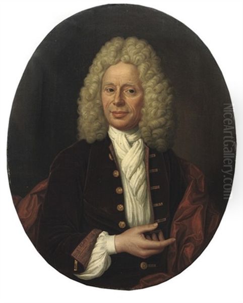 Portrait Of A Gentleman In A Red Velvet Costume With A White Chemise And White Jabot