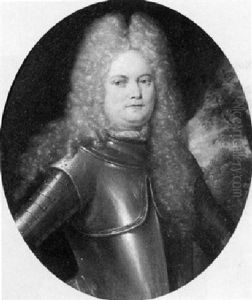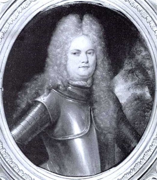 Portrat Eines Furstein Mit Allongeperucke Und Geschwarztem Harnisch Vor Einer Landschaftskulisse