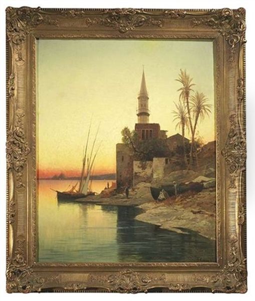 Bring the timeless beauty of Hermann David Solomon Corrodi's Nillandschaft Mit Einer Moschee Bei Sonnenuntergang. Im Hintergrund Blick Auf Die Pyramiden Von Gizeh into your home with a handmade oil painting reproduction. Carefully recreated on canvas by skilled artists using traditional techniques, this piece captures the delicate brushwork, subtle light, and vibrant color of the original masterpiece. With museum-level quality and rich texture, it brings elegance and artistic depth to any space. Enjoy free shipping and make this masterpiece a part of your personal collection.