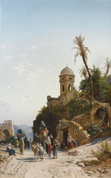 On The Road To Jerusalem Oil Painting by Hermann David Solomon Corrodi