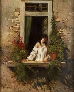Papst Leo Xiii. Mit Kardinalen Auf Einer Terrasse Uber Rom