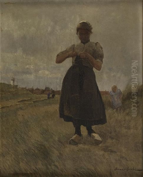 Junge Hollanderin Mit Strickzeug In Den Dunen