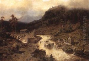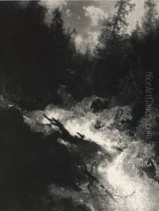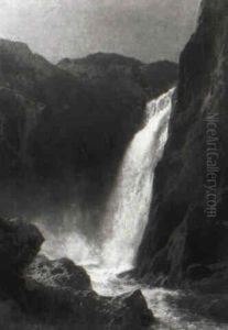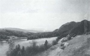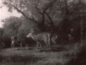 Rocky Mountain Landscape With Deer Frightened By A Bear