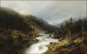 Shepherds With Cattle In A Mountainous Landscape