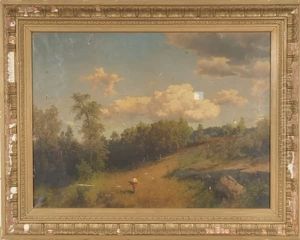 A Swiss Mountain Landscape With Figures And Cattle On A Path