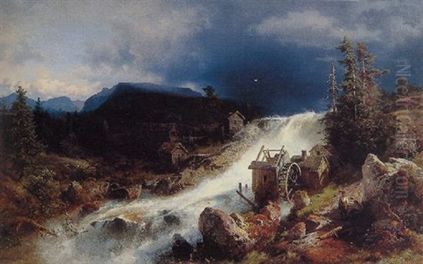 Mountain Landscape With Watermill