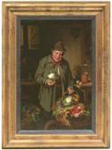 Kitchen Interior With A Greengrocer. Oil/panel, Signed