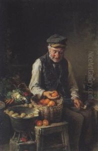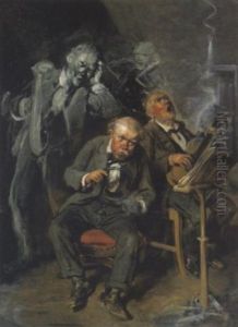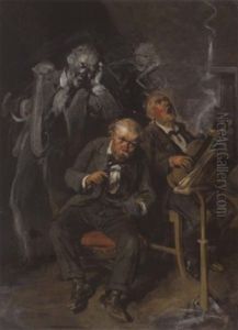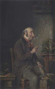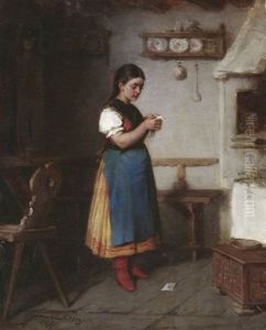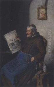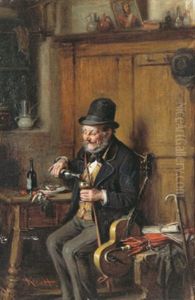 In Einer Bauerlichen Kuche Liest Ein Alter Mann Seine Zeitung