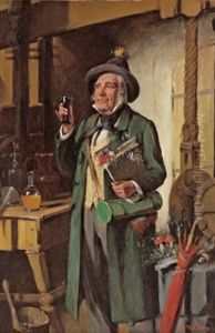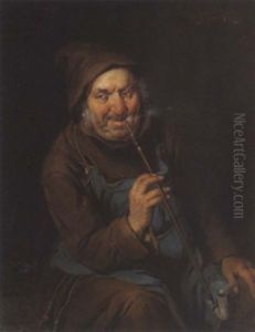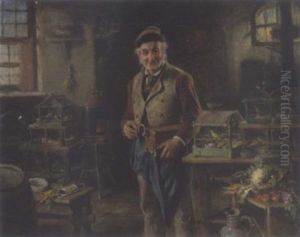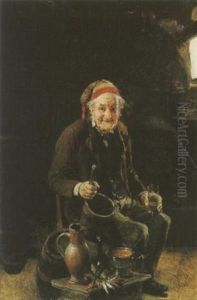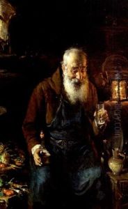 Alter Mann Im Weinkeller Beim Entzunden Der Lampe