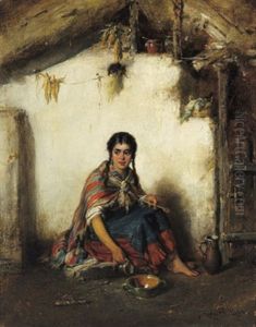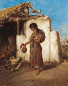 Zwei Madchen Mit Ihren Krugen Am Brunnen