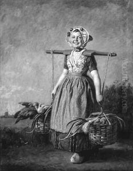 "kleine Magd Mit Gemusekorben". Sign. Und Bez. Munchen. Ol Auf Lwd. 90 X 70,5 Cm. Rahmen