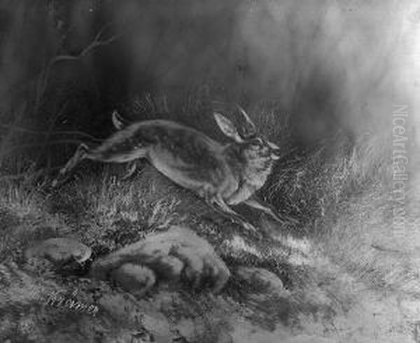H. "rehbock Bzw. Hase Im Wald". Zwei Gegenstucke. Sign
