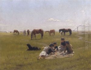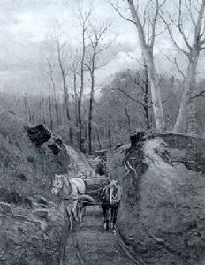 "pferdefuhrwerke Mit Baumstammen" In Weiter Fluslandschaft