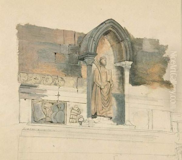 Heiligenfigur Unter Gotischem Bogen.