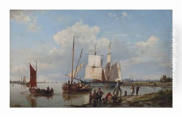 Shipping On A Calm Near An Estuary Oil Painting by Hermanus Koekkoek the Elder