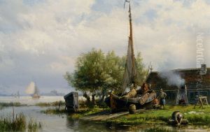 Dutch River Landscape With Figure Boating