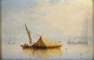 Sailing Vessels And A Rowing Boat Offshore