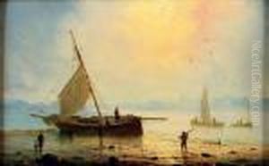 Fishermen By The Shore At Sunset