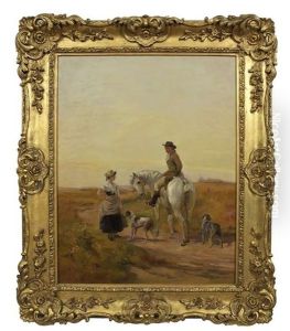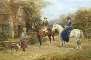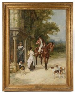 A Dismounted Gentleman With Ladies At A Country Stile; A Gentleman And His Horse At A Cottage Door (2 Works)