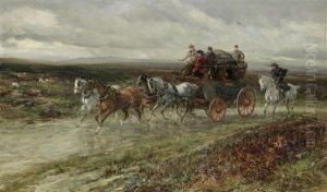 Village Scene With Carriage And Dogs