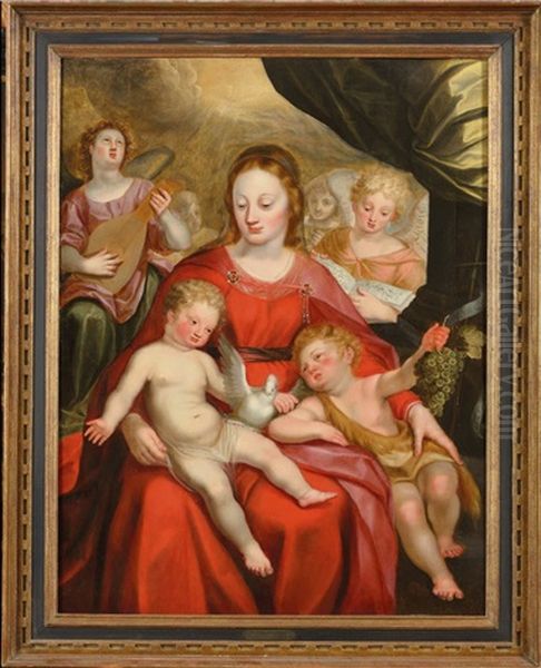Vierge A L"enfant Accompagnee De Saint Jean-baptiste Et D"anges Musiciens