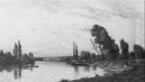 A Wooded River Landscape With A Figure On A Bank