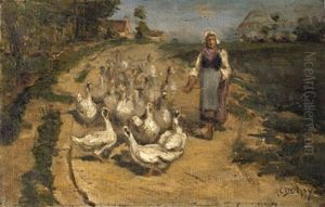 Washerwoman At Dusk (two Ducks, Stencil, Verso)