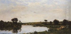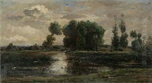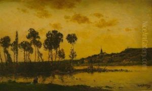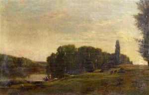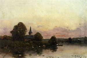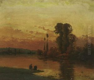 Lavandiere Pres D'un Etang, Soleil Couchant (collab. W/jacques Henri Delpy ?)