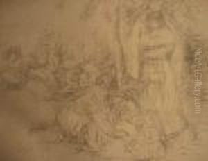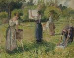 Les Lavandieres Oil Painting by Hippolyte Camille Delpy