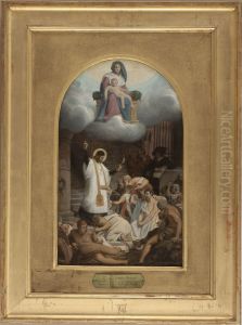 Etude De Trois Personnages Pour L'eglise Saint Vincent De Paul, A Paris.
