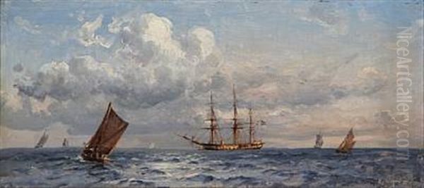 Fregatten Sjaelland. Set Fra Skraenten Ved Folehave Skov En Sommer Eftermiddag 1881