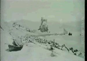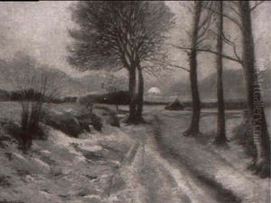 Vinterlandskab Med Rytter Og Flyvende Krager