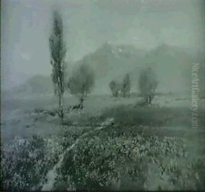 Pastoral Landscape With Three Men On Horseback Speaking With A Gentleman Wearing A Top Hat