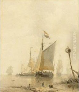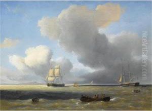 Seascape With A Rowboat And A Sailing Ship In Calmweather
