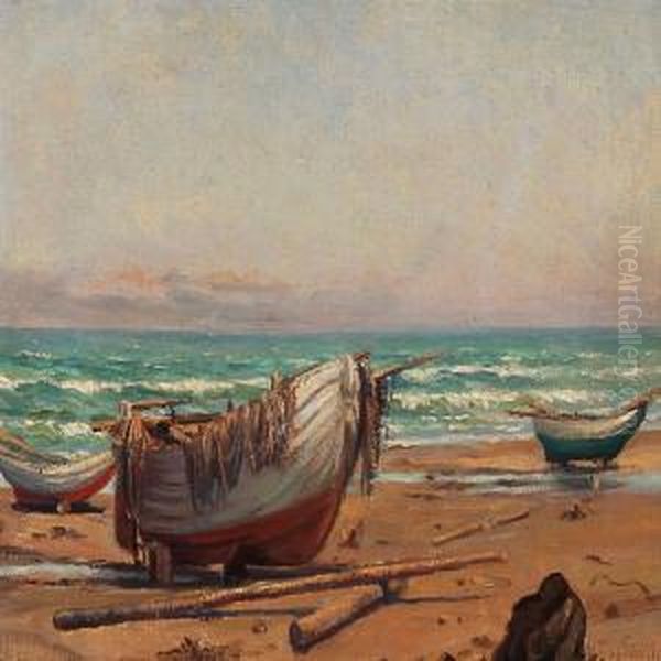 Bring the timeless beauty of Holger Topp Pedersen's Coastal Scene With Boats On The Beach into your home with a handmade oil painting reproduction. Carefully recreated on canvas by skilled artists using traditional techniques, this piece captures the delicate brushwork, subtle light, and vibrant color of the original masterpiece. With museum-level quality and rich texture, it brings elegance and artistic depth to any space. Enjoy free shipping and make this masterpiece a part of your personal collection.