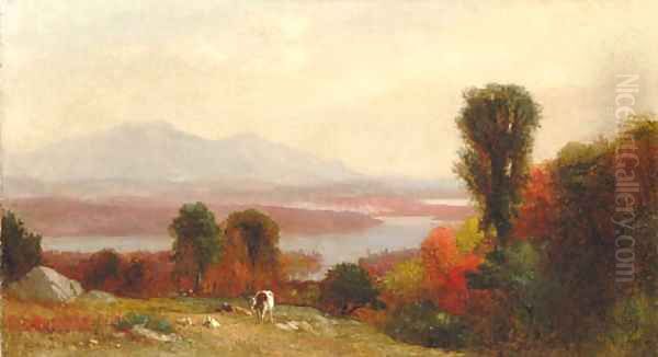 Cows and Sheep Grazing in an Autumn River Landscape
