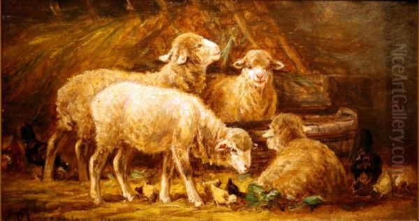 Lambs in a Barn