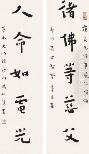 Bring the timeless beauty of Hong Yi's Calligraphy Couplet In Running Script into your home with a handmade oil painting reproduction. Carefully recreated on canvas by skilled artists using traditional techniques, this piece captures the delicate brushwork, subtle light, and vibrant color of the original masterpiece. With museum-level quality and rich texture, it brings elegance and artistic depth to any space. Enjoy free shipping and make this masterpiece a part of your personal collection.