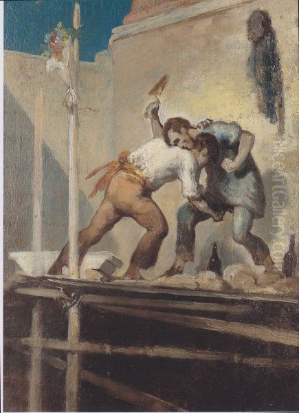 Bring the timeless beauty of Honore Daumier's Fighting bricklayers into your home with a handmade oil painting reproduction. Carefully recreated on canvas by skilled artists using traditional techniques, this piece captures the delicate brushwork, subtle light, and vibrant color of the original masterpiece. With museum-level quality and rich texture, it brings elegance and artistic depth to any space. Enjoy free shipping and make this masterpiece a part of your personal collection.