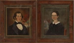 A Pair Of Portraits: A Gentleman With Horn And A Lady With Lace Collar: Mr. And Mrs. F.e. Holt Of Cabot, Vermont