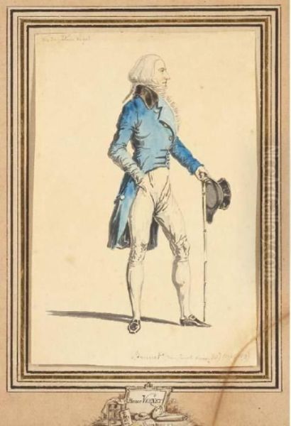Portrait De Monsieur Brunet Appuye Sur Une Canne, De Profil Tournevers La Droite