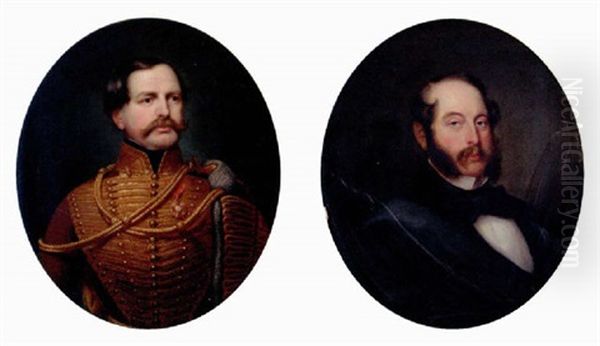 Portrait Of A Hussar Wearing A Scarlet Tunic With Gold Bullion Fringing And A Badge Of The Russian Order Of St. Anne